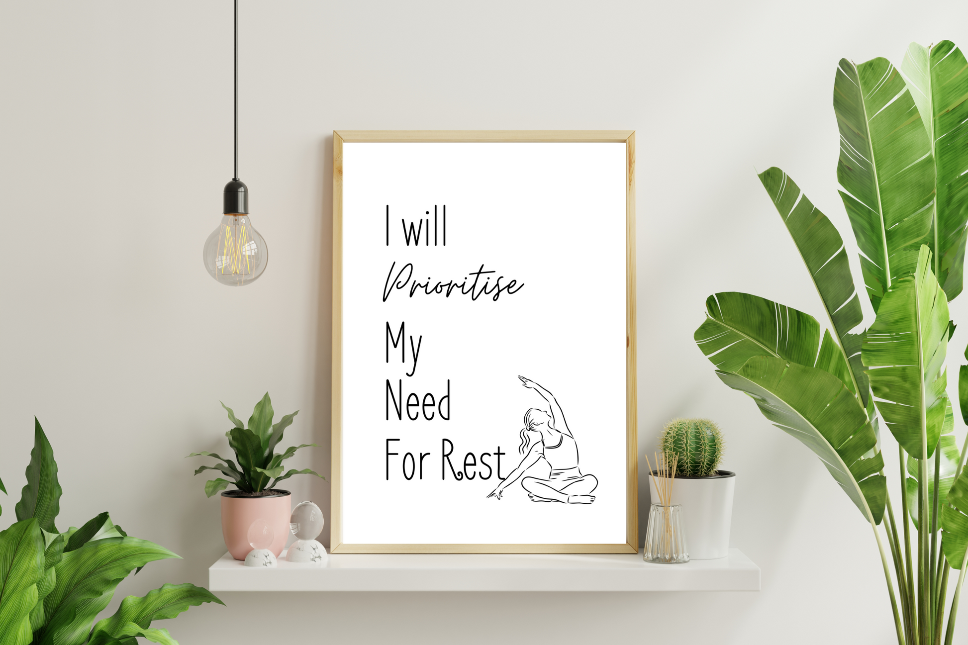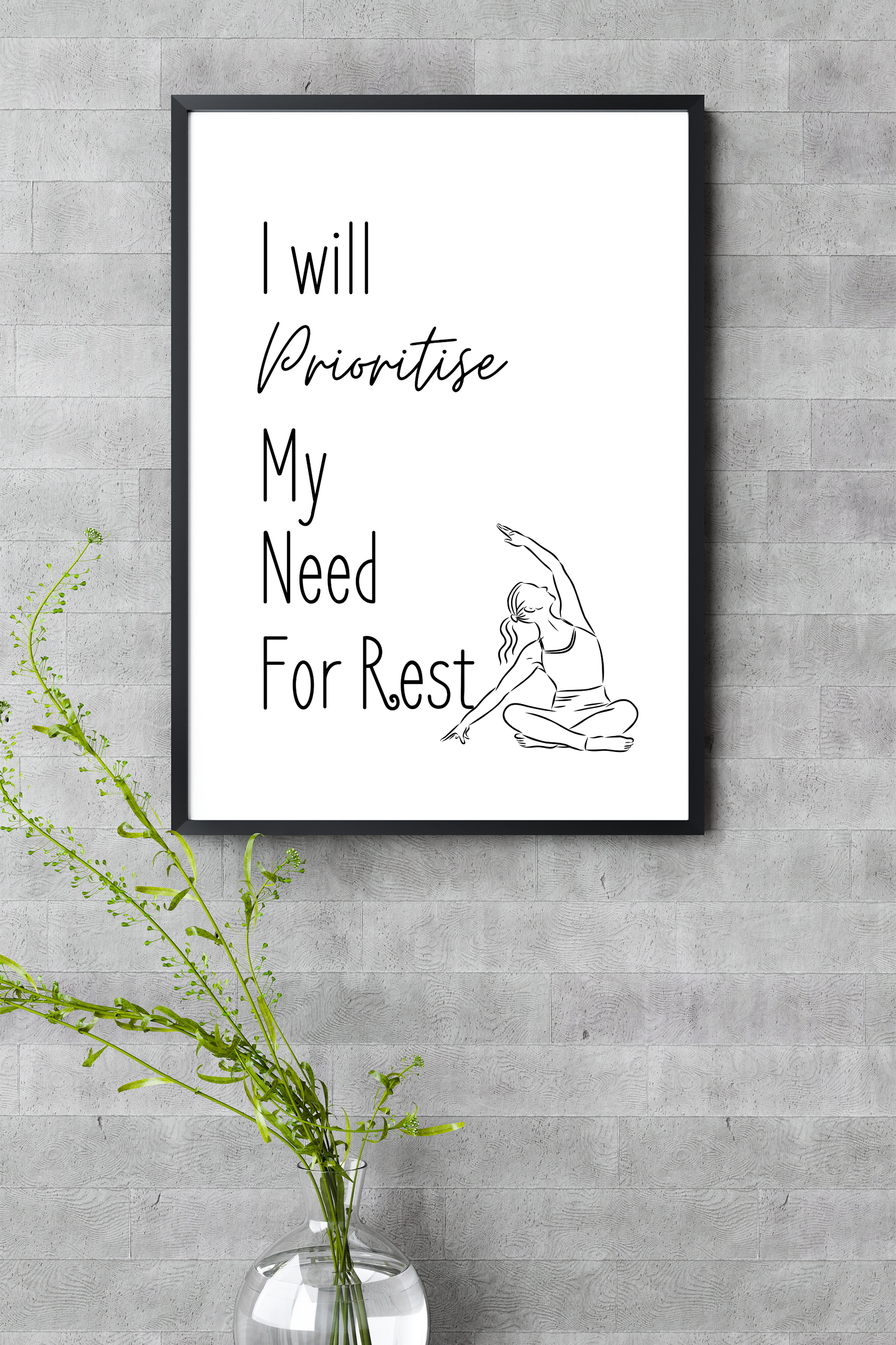 Self-Love Printable Wall Art | "I Will Prioritise My Need For Rest" | Positive Quote | Motivational Wall Quote for Women